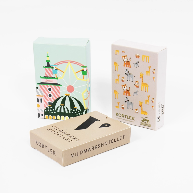 | Material: | 300 eller 350 g/m² 'Art Paper' för korten. För spelkortsasken 300 g/m² 'cardstock paper'. Alla med Glossy Varnish. |