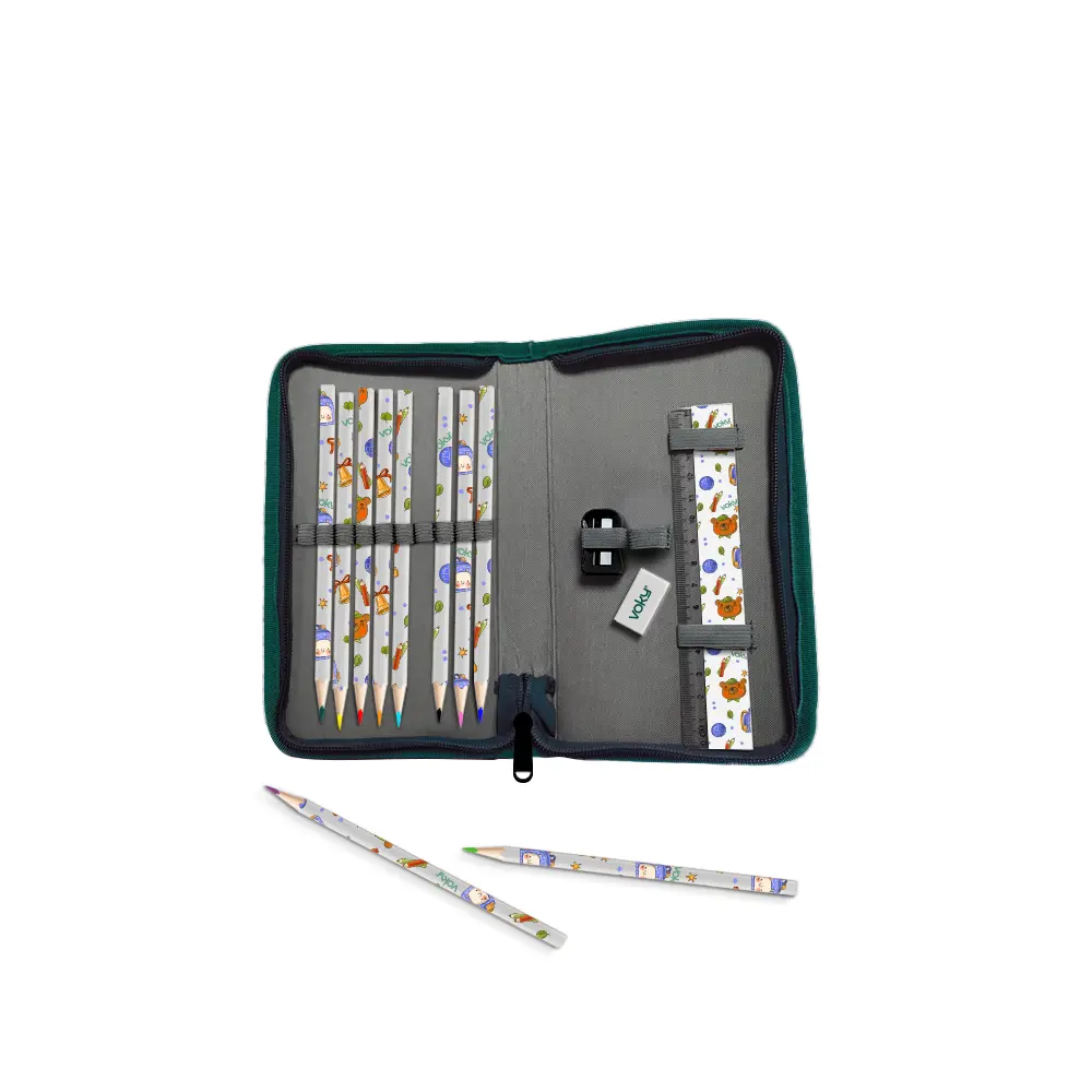 | Size: | Fodralet: 20,5x11,5x2,8 cm. Pennorna: 18 cm. Linjal: 15,5x2,8 cm. |